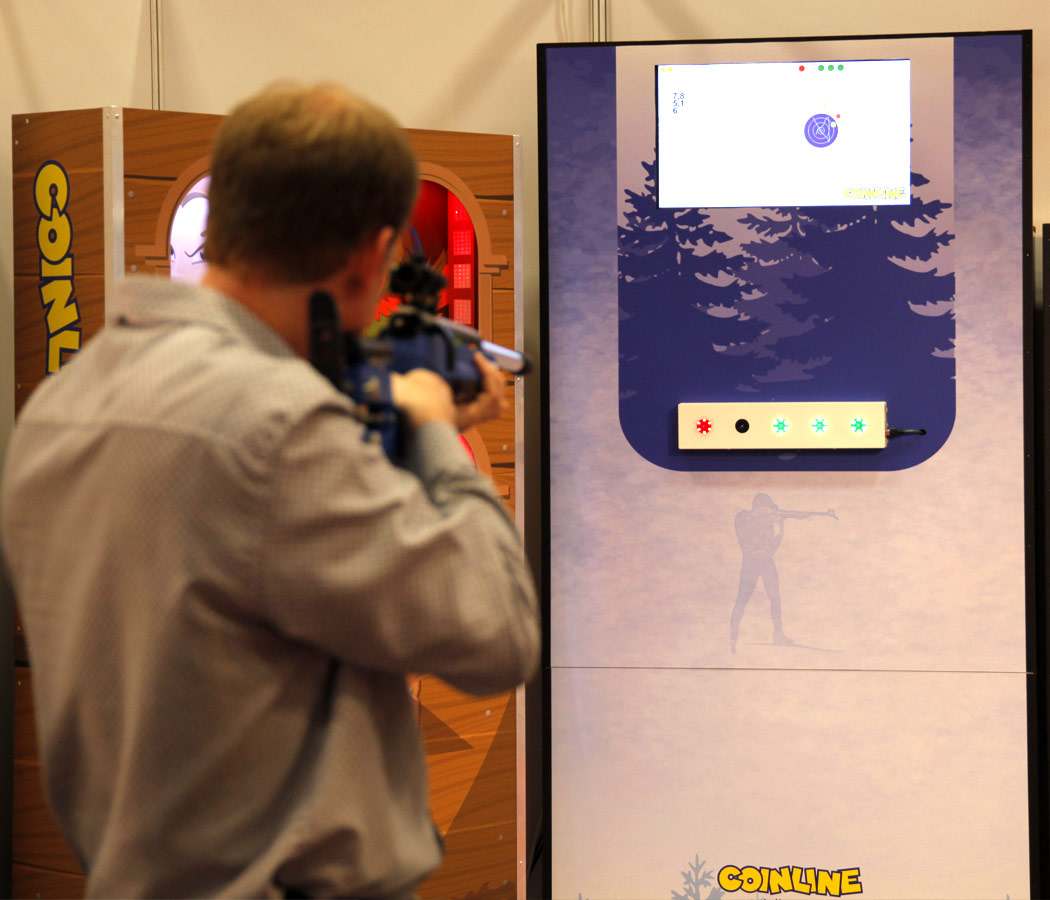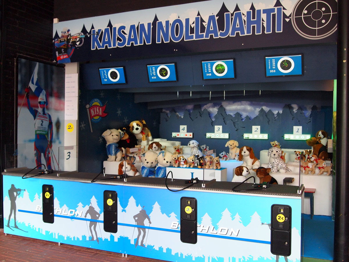 Coinline Games and Finnish Eco-Aims have developed optical biathlon shooting game for amusement- and theme parks. The idea of the game is based on the traditional amusement park games, where players test their shooting skills. We introduced the first turn-key version of the Biathlon shooting game in Linnanmäki Amusement Park, Helsinki in 2013. There are several amusement park installations and now also an Event single player version of the game.